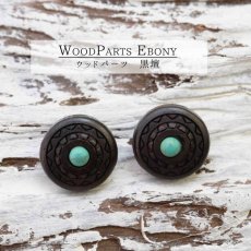 【一粒売り】ウッドビーズ 歯車 ギア 黒檀 エボニー フェイクターコイズ 約16mm 天然木 風水 ハンドメイド アクセサリーパーツ ナチュラル 品番:10997 [10997]