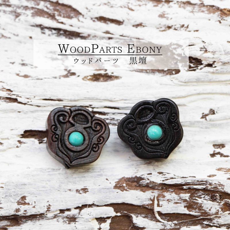 【一粒売り】ウッドビーズ 鐘 ベル 黒檀 エボニー フェイクターコイズ 約16mm 天然木 風水 ハンドメイド アクセサリーパーツ ナチュラル 品番:11876