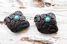 【一粒売り】ウッドビーズ 松 パイン 黒檀 エボニー フェイクターコイズ 約16×19mm 天然木 風水 ハンドメイド アクセサリーパーツ ナチュラル 品番:10996