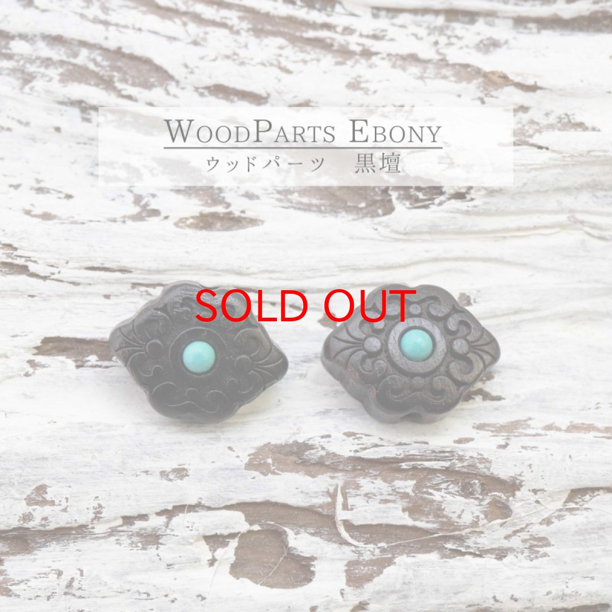 【一粒売り】ウッドビーズ 如意花 フラワー 黒檀 エボニー フェイクターコイズ 約13×17mm 天然木 風水 ハンドメイド アクセサリーパーツ ナチュラル 品番:10323