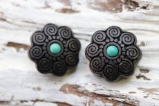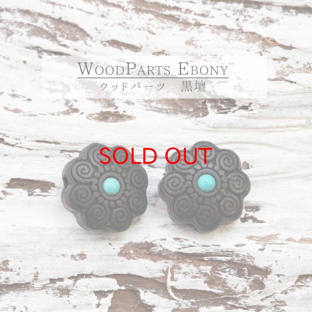 【一粒売り】ウッドビーズ 小風風 黒檀 エボニー フェイクターコイズ 約15mm 天然木 風水 ハンドメイド アクセサリーパーツ ナチュラル 品番:10947 [10947]