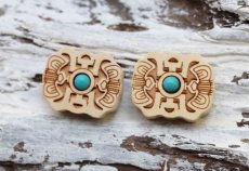 【一粒売り】 ウッドビーズ コウモリ紋 蝙蝠 柘植 box wood フェイクターコイズ 約12×15mm 天然木 風水 ハンドメイド アクセサリーパーツ ナチュラル 品番:10877