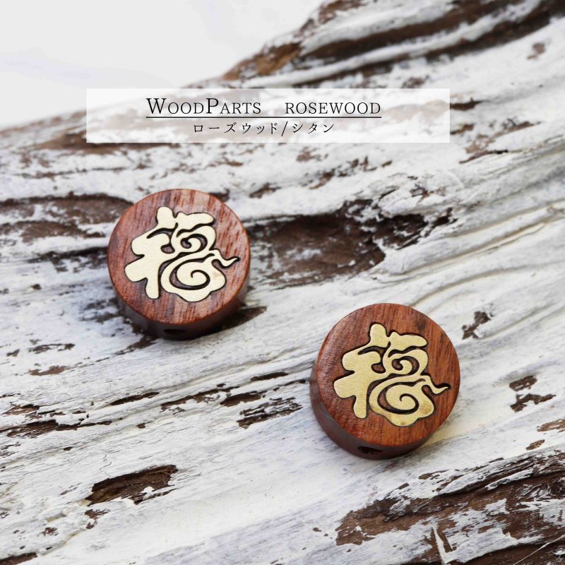 【一粒売り】ウッドビーズ ディスク型 福 紫檀 ローズウッド 約14mm 天然木 風水 ハンドメイド アクセサリーパーツ ナチュラル 品番:11014 [11014]