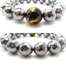 【20%OFFセール】 【数量限定】 【新商品】 テラヘルツ鉱石&カービングオニキス 龍 ブレスレット ミラーカット 12mm玉 【送料無料】 健康運 お守り [58202005045]