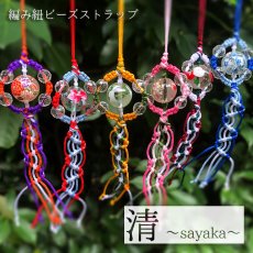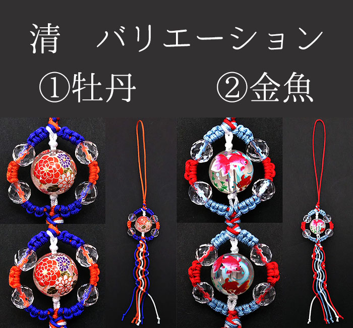 清 さやか ストラップ プリントストーン 水晶 編み紐 マクラメ編み 根付 水 天然石 パワーストーン ハンドメイド 手作り 金魚 朝顔 兎 椿 桜 牡丹 [sayaka]