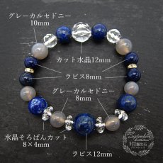 【20%OFFセール】 【9月誕生石】ラピスラズリデザインブレスレット グレーカルセドニー 水晶 ブレスレット ブレス オリジナルブレス 天然石 パワーストーン [9-3500]