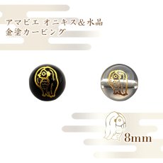 【新ラインナップ追加】 カービング アマビエ アマビコ 金塗り オニキス 水晶 一粒売り 8mm 天然石 パワーストーン