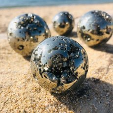 【20%OFFセール】 【 一点もの 】パイライト pyrite Φ50 隕石 黄鉄鉱 丸玉 置物 [pyrite8700]