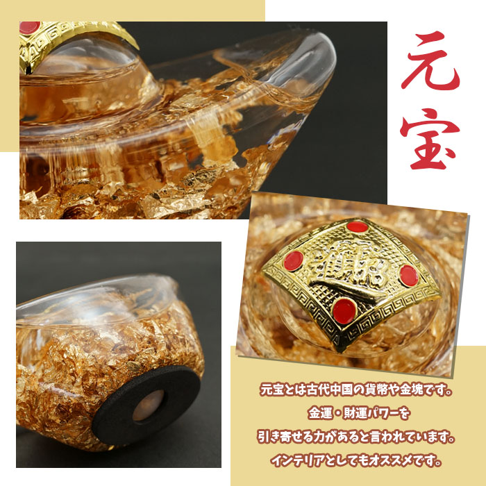 元宝の置物 元寶 げんぽう 正月 新年 飾り物 縁起 金色 金箔 ガラス製 キラキラ 置き物 天然石 パワーストーン [genpou1800]