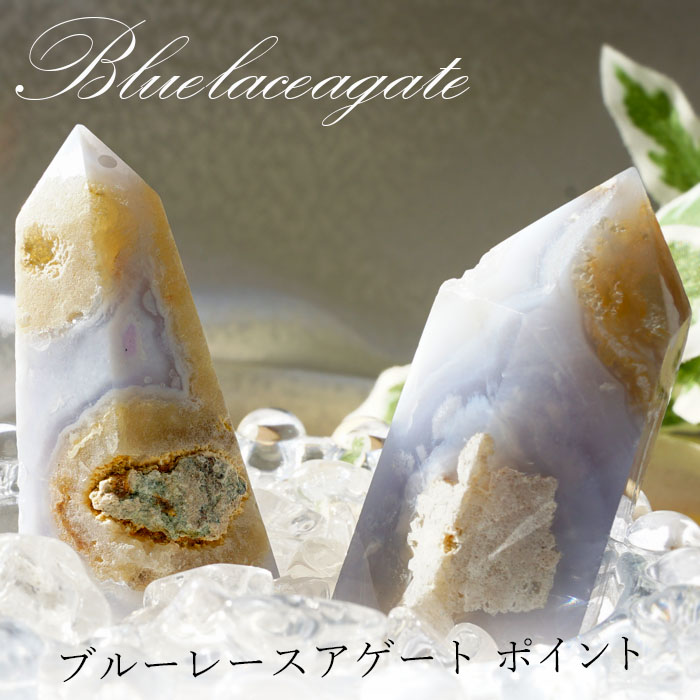 【20%OFFセール】 ブルーレースアゲート ポイント 原石 六角柱 【 一点もの 】ブラジル産 Blue lace agate 空色縞瑪瑙 浄化 空間 リフレッシュ パワーチャージ 天然石 パワーストーン [burepo2700]