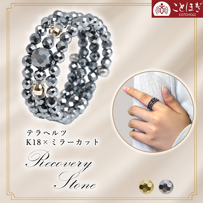 テラヘルツ ミラーカット K18 形状記憶リング 日本製 自社製 天然記念物 高純度 テラヘルツ鉱石 血流改善 肩こり 冷え性 健康ストーン 国内品質検査済 ことほぎ 天然石 パワーストーン [kotohogiring-4]