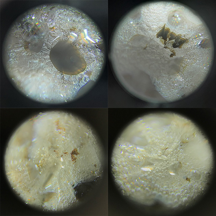 顕微鏡で見ると美しいガラス質の流理組織が見えます