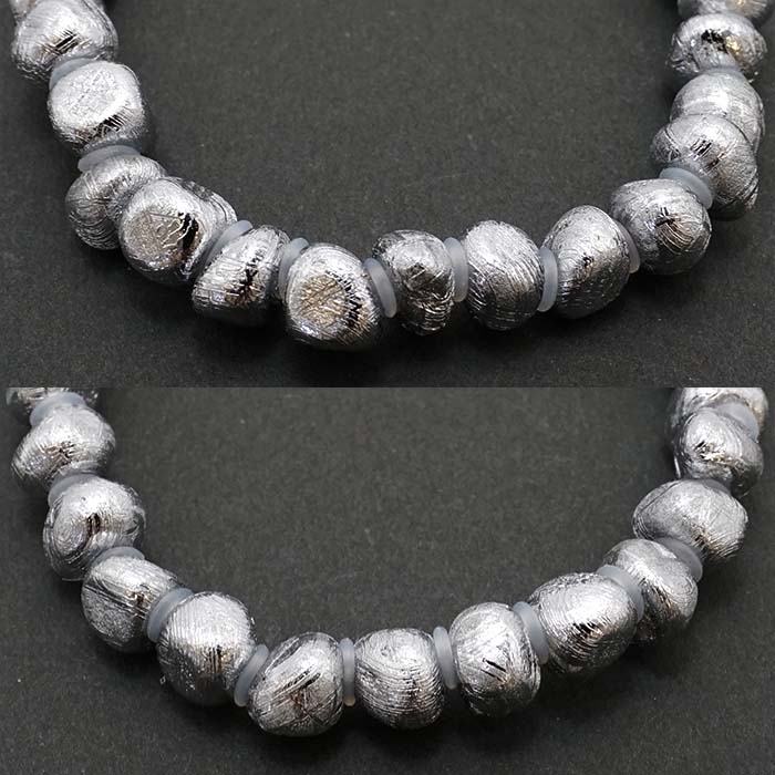【20%OFFセール】 【一点物】 ギベオンブレスレット タンブル型 約6.6〜8.5mm ギベオン メッキ加工 ナミビア産 宇宙のパワー 隕石 チャネリング 浄化 天然石 パワーストーン カラーストーン [01010036051602111004-2]