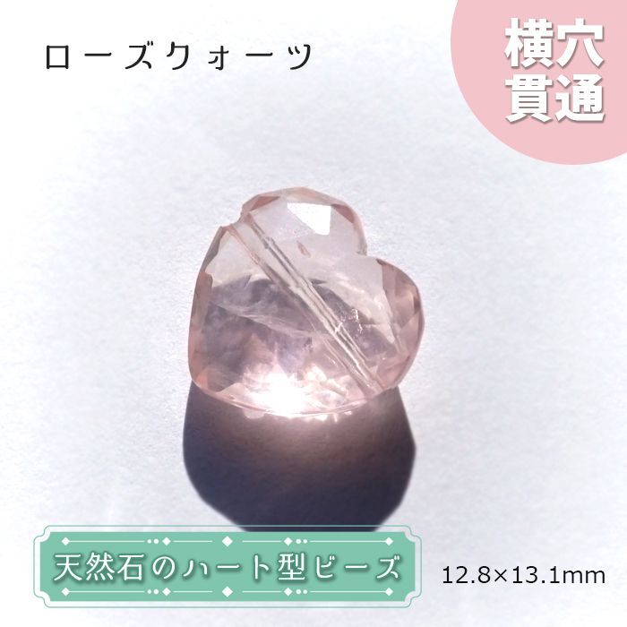 【20%OFFセール】 天然石 ハート型ビーズ ローズクォーツ 12×13mm マダガスカル産 【 一点もの 】ハート型 横穴貫通 穴あき ビーズ ハート オリジナルアクセサリー ハンドメイド材料 【 一粒売り 】 パワーストーン お守り 浄化 カラーストーン [06020000045002112003]
