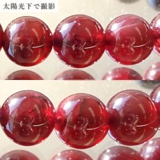 このブレスレットのように深い赤色が最も有名ですが、他に紫や緑、黄色など様々な色を持つ石です。