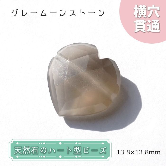 天然石 ハート型ビーズ グレームーンストーン 13×13mm スリランカ産 【 一点もの 】 ハート型 横穴貫通 穴あき ビーズ ハート オリジナルアクセサリー ハンドメイド材料 【 一粒売り 】 パワーストーン お守り 浄化 カラーストーン [06020000014402112017]