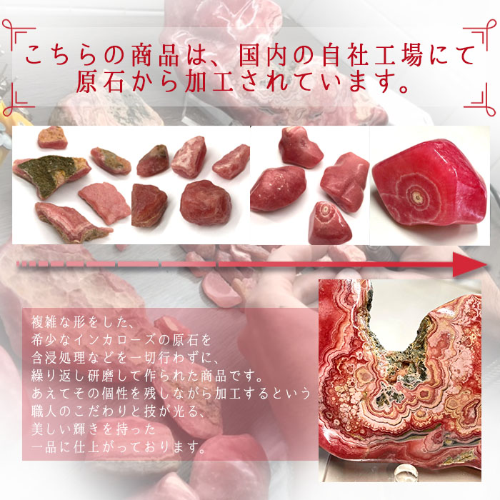 アルゼンチン産のインカローズは特に発色が良く、美しいピンクカラーの良質なものが産出されるため貴重なパワーストーンとして扱われています。