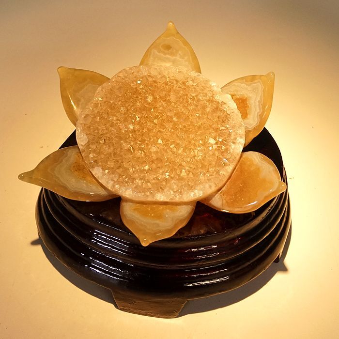 【20%OFFセール】 メノウ 蓮 ジオード ブラジル産 木製台座付き 426g 【 一点物 】 agate 蓮の花ジオード 瑪瑙 めのう ジオード 金運 財運 浄化 置き物 浄化 台座付き お守り 天然石 パワーストーン カラーストーン [21030000007602206005]