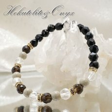 【20%OFFセール】 北投石 デザインブレスレット オニキス スモーキークォーツ ブラジル水晶 水晶 チャーム ブレス オリジナルブレス 浄化 天然石 パワーストーン [03010000000002104010]