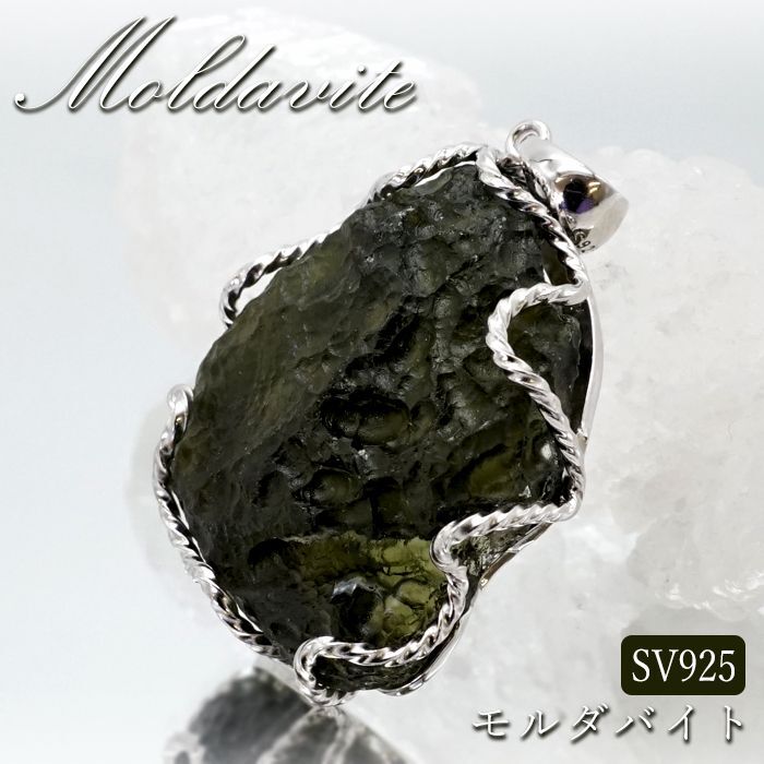モルダバイト 原石 ペンダントトップ SV925 【 一点もの 】チェコ産 Moldavite 天然ガラス パワーストーン 隕石 才能 能力 モルダヴ石 浄化 お守り 天然石 カラーストーン [14020000120302208022]