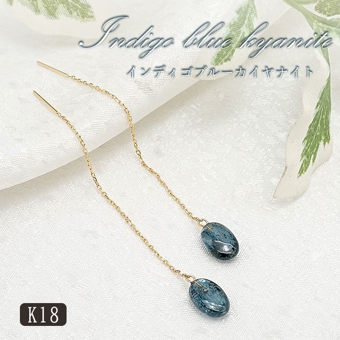 【20%OFFセール】 【一点もの】 インディゴブルーカイヤナイト アメリカンピアス タンザニア産 K18 日本製 ピアス チェーンピアス ゴールド カイヤナイト 天然石 パワーストーン カラーストーン [15040000283402208004]