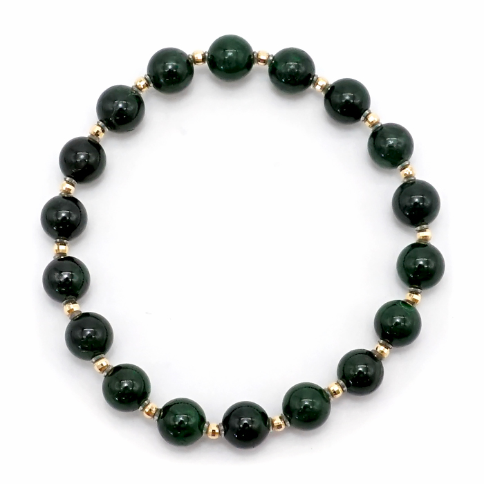 【20%OFFセール】 【 一点もの 】 ミャンマー翡翠 ブレスレット 7mm K18 ミラーボール ミャンマー産 無処理 ダークグリーン Jade 翡翠 5月誕生石 お守り 浄化 希少 天然石 パワーストーン カラーストーン [01010701010402208003]