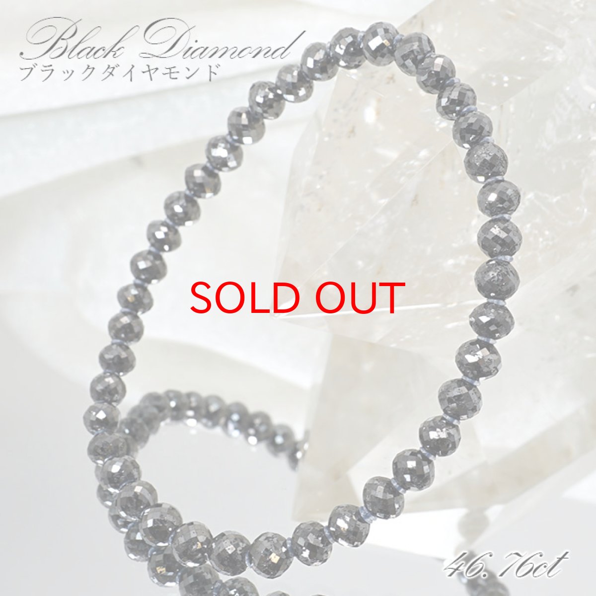 【20%OFFセール】 ブラックダイヤモンド 約45.76ct ブレスレット アフリカ産 鉱物証明書つき【一点物】 約5×4mm玉 天然ダイヤモンド Black Diamond 天然石 パワーストーン カラーストーン [01010500095702211001]