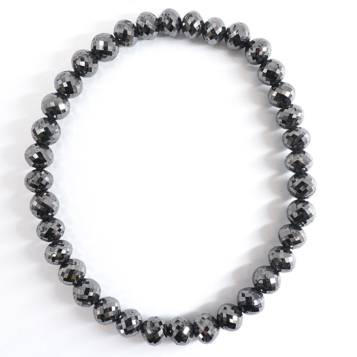 【20%OFFセール】 ブラックダイヤモンド 約68ct ブレスレット アフリカ産 鉱物証明書つき【一点物】 約6×5mmカット玉 天然ダイヤモンド Black Diamond 天然石 パワーストーン カラーストーン [01010600095702211001]