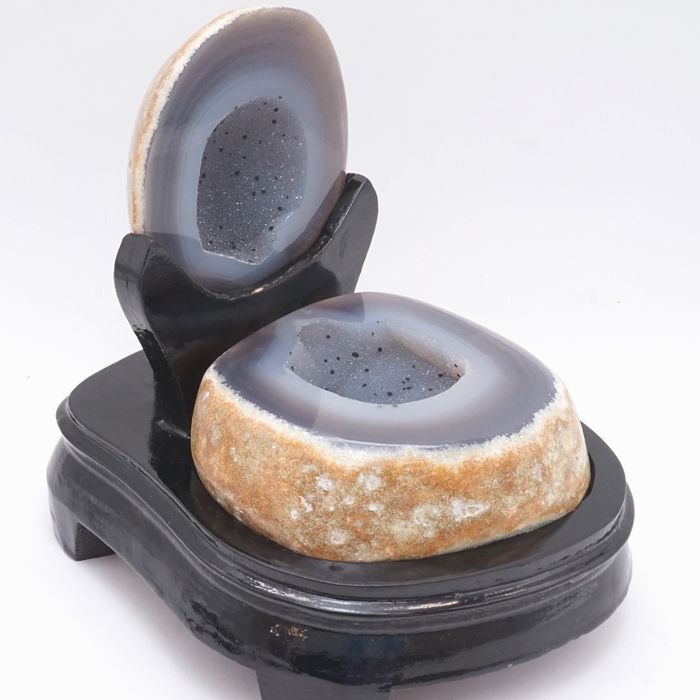 1点ずつ瑪瑙に合わせ、最大限に良さを引き出したジャストフィットの専用木製(紫檀)台座付きです。