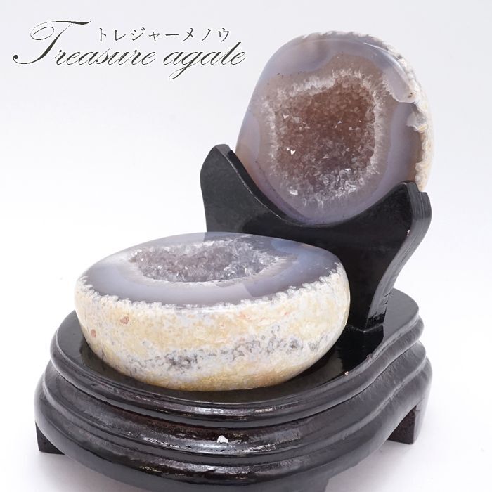 トレジャーメノウは、メノウの原石の中に壁面が水晶の結晶でできた空洞があるものをいいます。