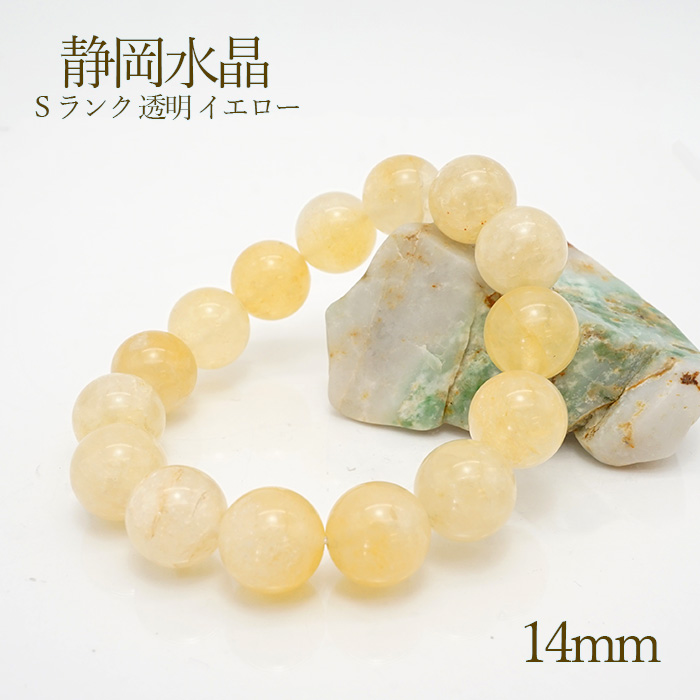 【20%OFFセール】 【日本の石】 静岡水晶 Sランク イエロー 透明 14mmブレスレット カラーストーン
