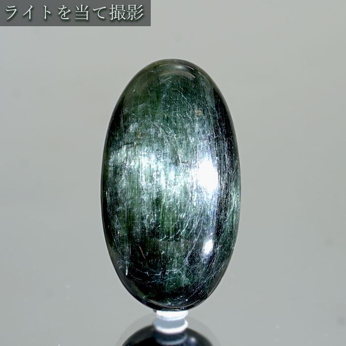 さらにこのルースに光を当てると、アクチノライトの結晶によって、光の帯のような輝きが現れます。