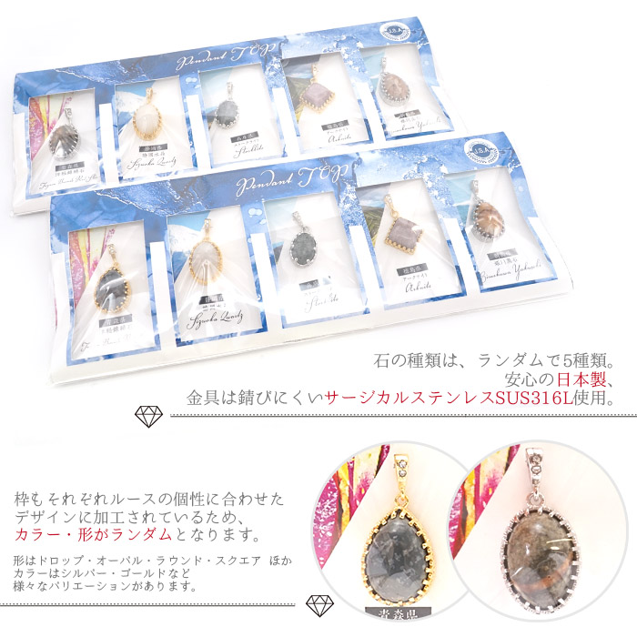 【20%OFFセール】 【弊社オリジナル】 日本銘石アソート ペンダントトップ 《ランダム》 5点セット サージカルステンレス製 SUS316L 日本製 天然石 パワーストーン [12020000000002301001]