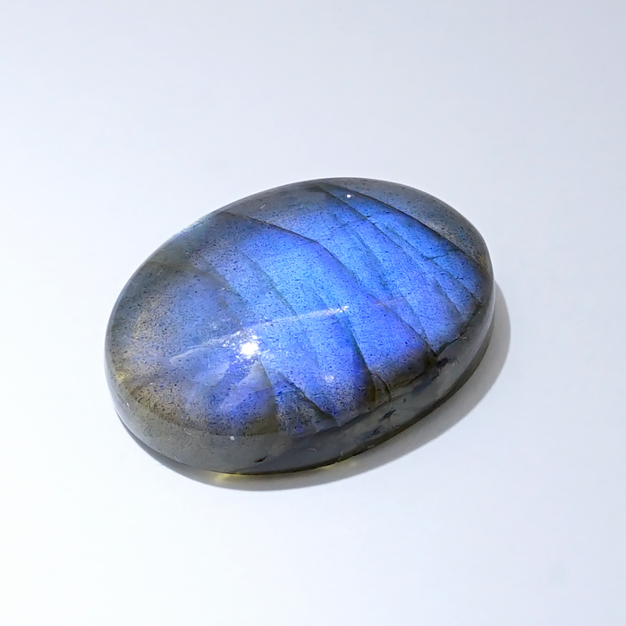 そのため、従来のラブラドライトのルースとは違って、正面から見ても輝きが衰えない、そんな高品質のルースとなっています。