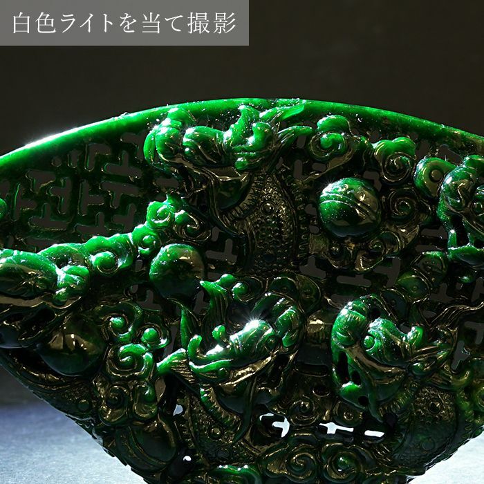 【20%OFFセール】 ミャンマー翡翠 龍 彫り物 Jade Jadeite 一点もの ひすい ヒスイ 国石 ダークグリーン 手彫り お守り カラーストーン [21020000010402207006]