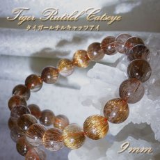 【20%OFFセール】 タイガールチルキャッツアイ ブレスレット 9mm ブラジル産 一点もの Tiger Rutilel Catseye 天然石 針水晶 パワーストーン カラーストーン [01010901007602211009]