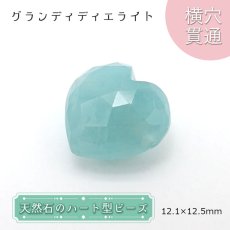 【20%OFFセール】 天然石 ハート型ビーズ グランディディエライト 12.1×12.5mm マダガスカル産 【一点もの・一粒売り】 横穴貫通 穴あき 天然石 パワーストーン カラーストーン [06020000045002304011]