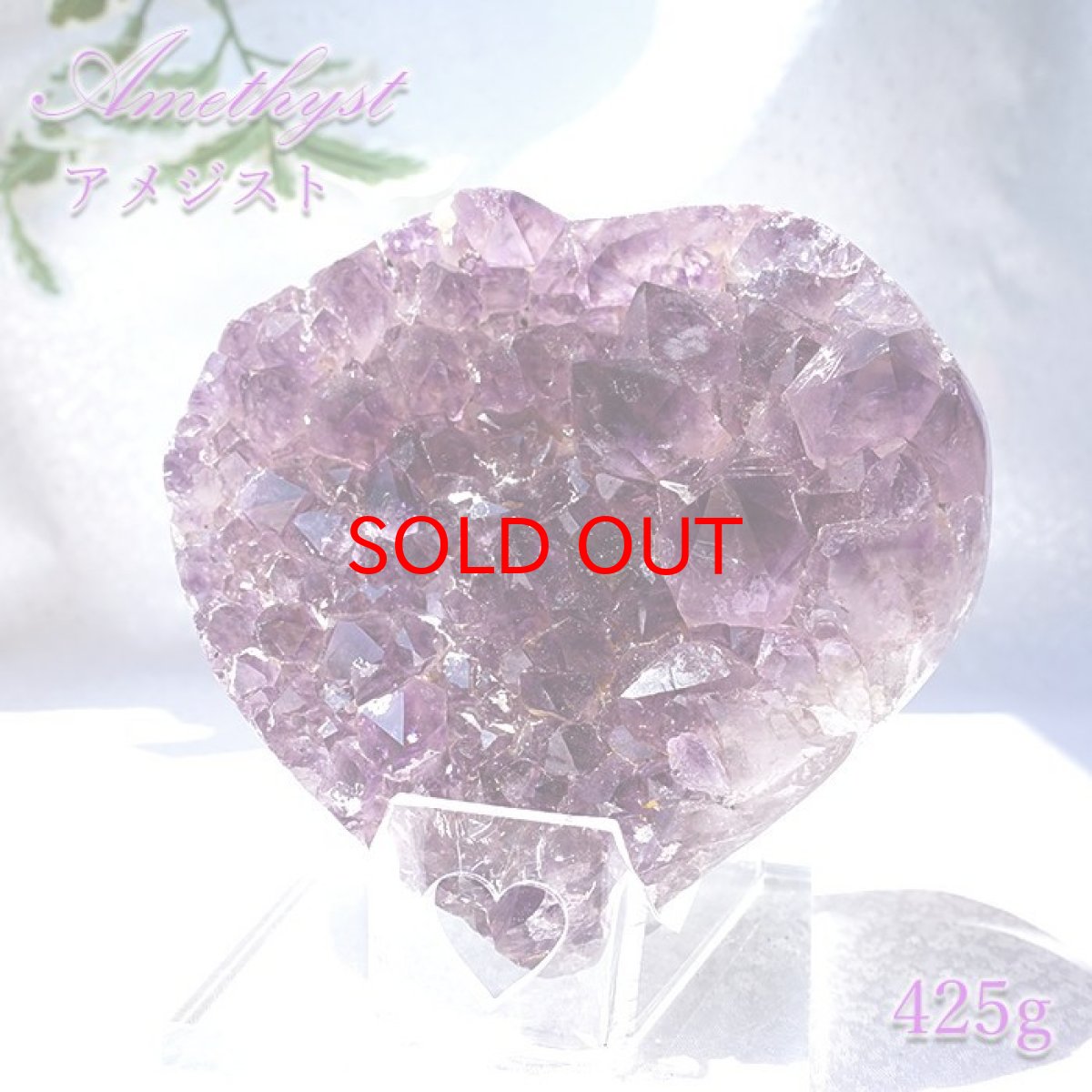 【20%OFFセール】 アメジストハートクラスター 425g ブラジル産 台付き amethyst 原石 2月誕生石 クラスター 天然石 紫水晶 風水 置物 浄化 パワーストーン カラーストーン [24010000007602104013]