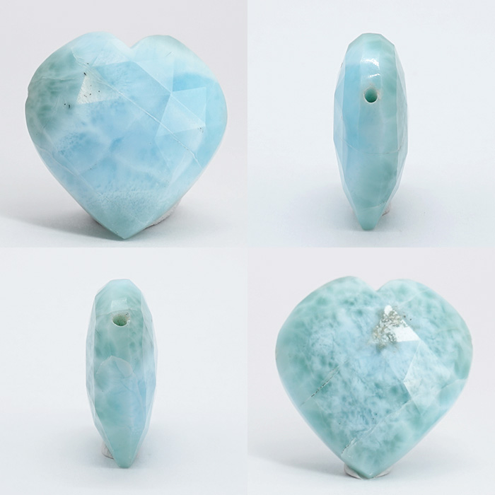 【20%OFFセール】 天然石 ハート型ビーズ ラリマー ドミニカ産 【一点もの・一粒売り】 横穴貫通 穴あき 天然石 パワーストーン カラーストーン [06030048021402204005]