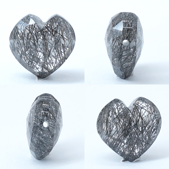 【20%OFFセール】 天然石 ハート型ビーズ ブラックルチル ブラジル産 【一点もの・一粒売り】 横穴貫通 穴あき 天然石 パワーストーン カラーストーン [06030048007602204073]