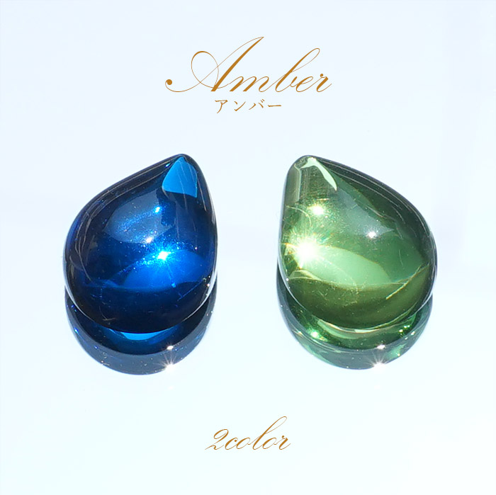 天然琥珀 サファイアブルー&グリーン アンバー ドロップ型 ルース 約1.1ct前後 リトアニア産 amber 天然石 パワーストーン カラーストーン [11202011081]