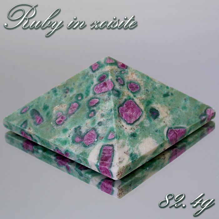 ゾイサイトの緑色とルビーの赤色のコントラストが美しく割合も非常に良いピラミッド型