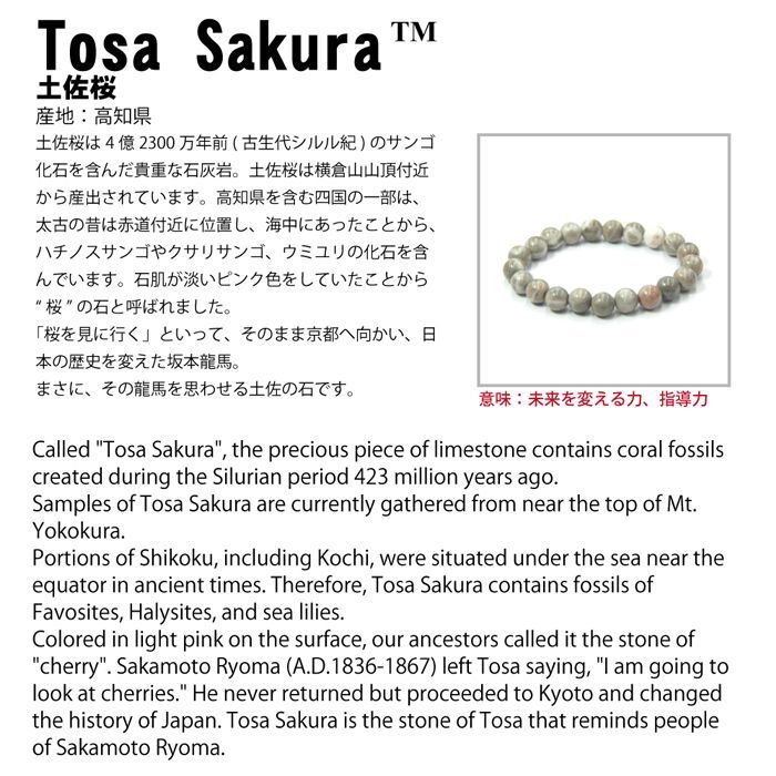 土佐桜は、4億2300万年前(古代シルル紀)のサンゴ化石を含んだ貴重な石灰岩。