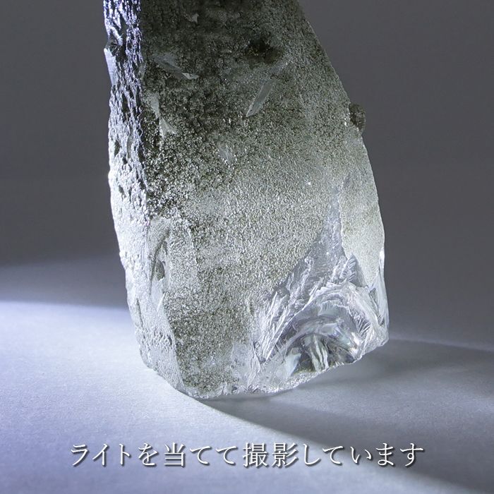 ガネーシュヒマール水晶の高い透明度とクローライトが表現する模様は、どの角度からも違った魅力、美しさがあり、インテリアとしても空間浄化にも最適です。