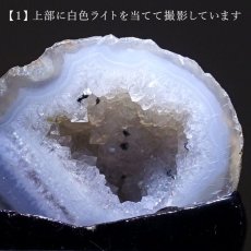 ↑【上部分】拡大写真 ↑【下部分】拡大写真 トレジャーメノウは、メノウの原石の中に壁面が水晶の結晶でできた空洞があるものをいいます。 それを割ったら、 まるで宝箱に宝物がザ…