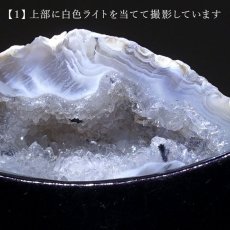 ↑【上部分】拡大写真 ↑【下部分】拡大写真 トレジャーメノウは、メノウの原石の中に壁面が水晶の結晶でできた空洞があるものをいいます。 それを割ったら、 まるで宝箱に宝物がザ…