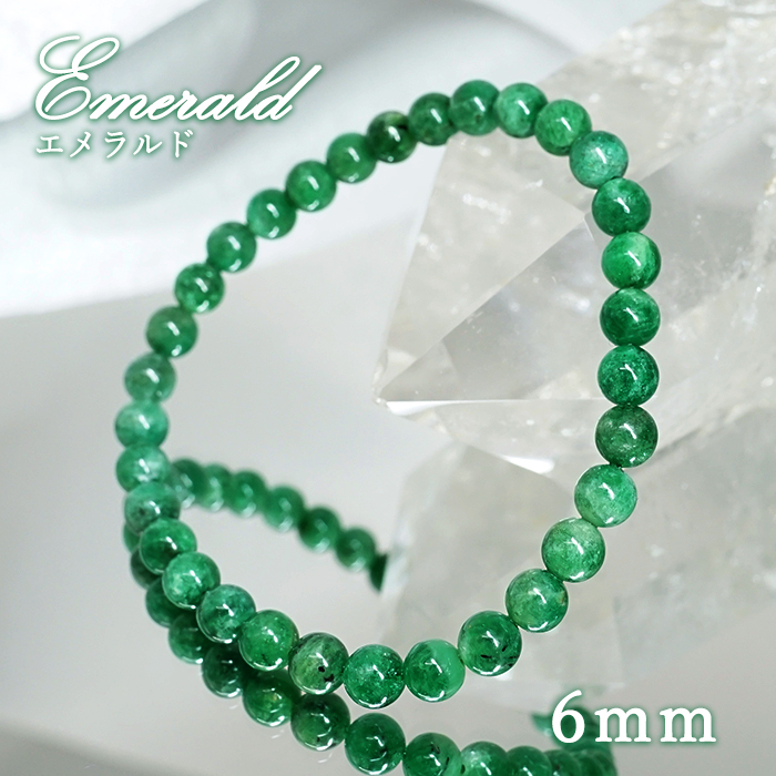 エメラルド 6mm ブレスレット【一点物】ブラジル産 emerald 裸石 緑柱石 5月誕生石 天然石 パワーストーン カラーストーン [01010601007602509001]