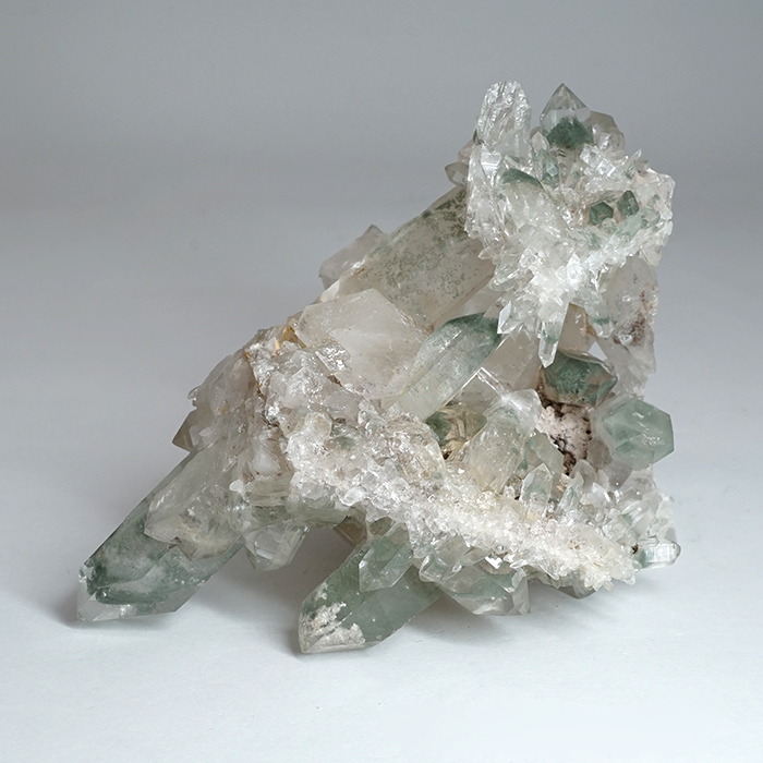 中でも今回ご紹介する個体には、マニハール産ならではの「深い緑色のクローライト(緑泥石)」が内包されており、