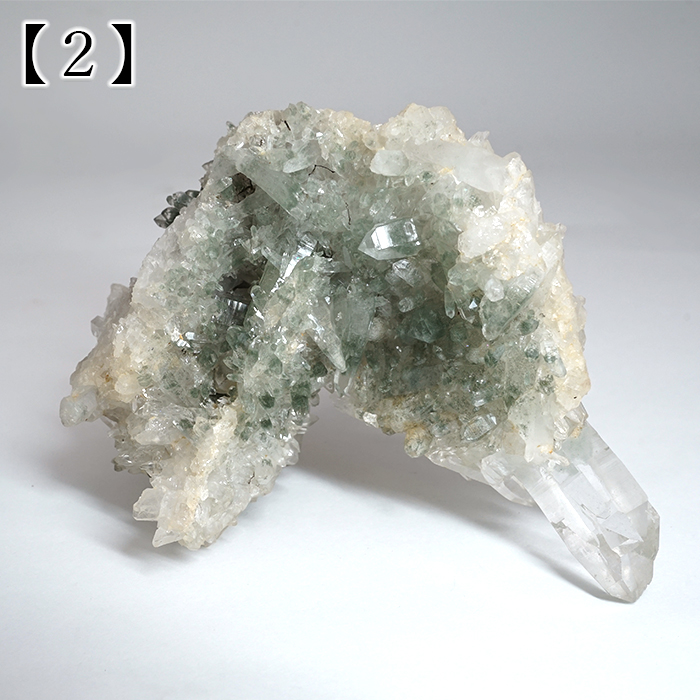 中でも今回ご紹介する個体には、マニハール産ならではの「深い緑色のクローライト(緑泥石)」が内包されており、