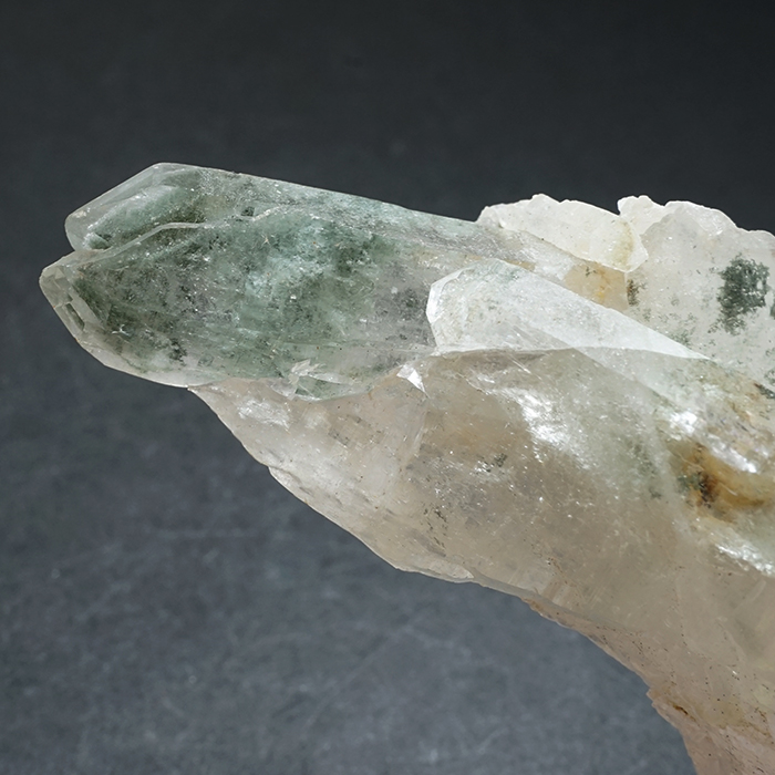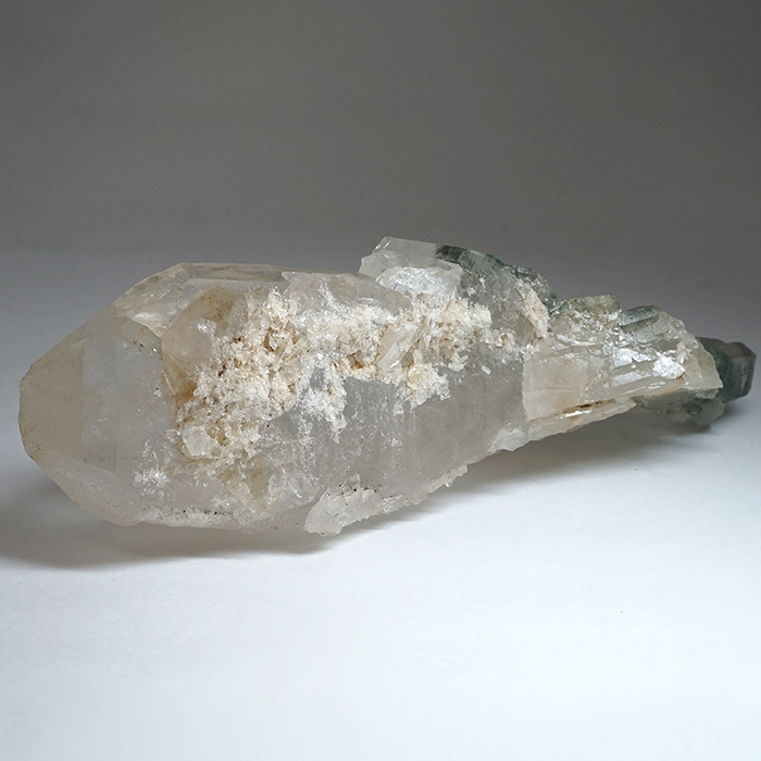 中でも今回ご紹介する個体には、マニハール産ならではの「深い緑色のクローライト(緑泥石)」が内包されており、